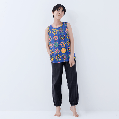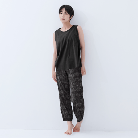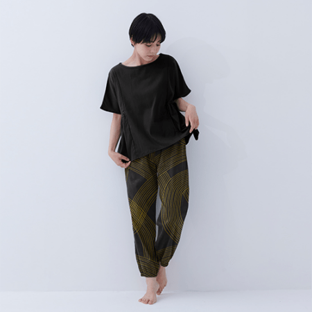 芍薬エキス配合 ボタニカルダイ ポケット付き綿ちぢみTシャツ(竹炭)