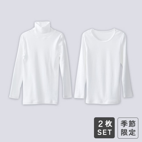 [季節限定] 綿100%の肌にやさしい暖かインナー レディース2枚セット(オフホワイト)