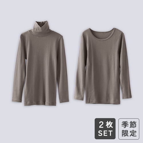 [季節限定] 綿100%の肌にやさしい暖かインナー レディース2枚セット(グレージュ)