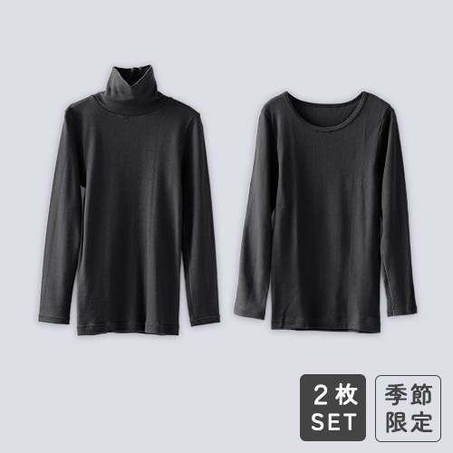 [季節限定] 綿100%の肌にやさしい暖かインナー レディース2枚セット(ブラック)
