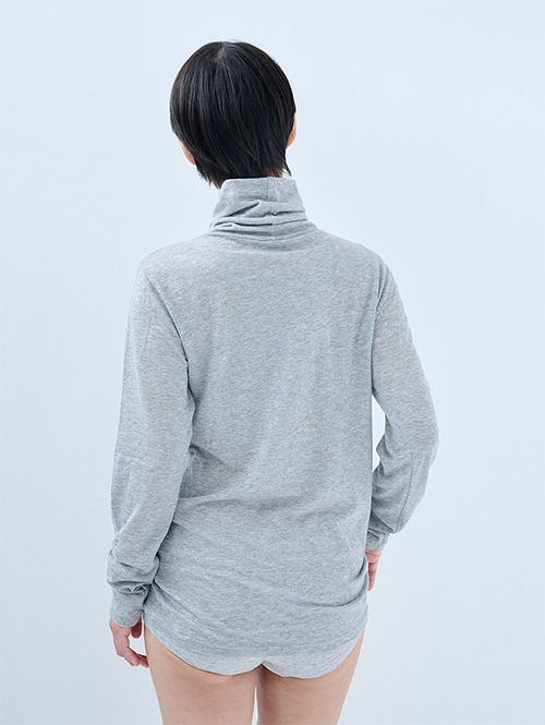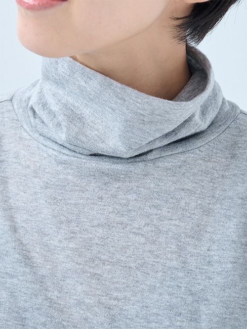 薄手でアウターに響きにくいタートルネック。コットン100%なので蒸れることがなく、ふんわり暖かさを感じられます。衿部分は2重の仕立てにしているのでニットや、インナーの襟から見えても大丈夫。