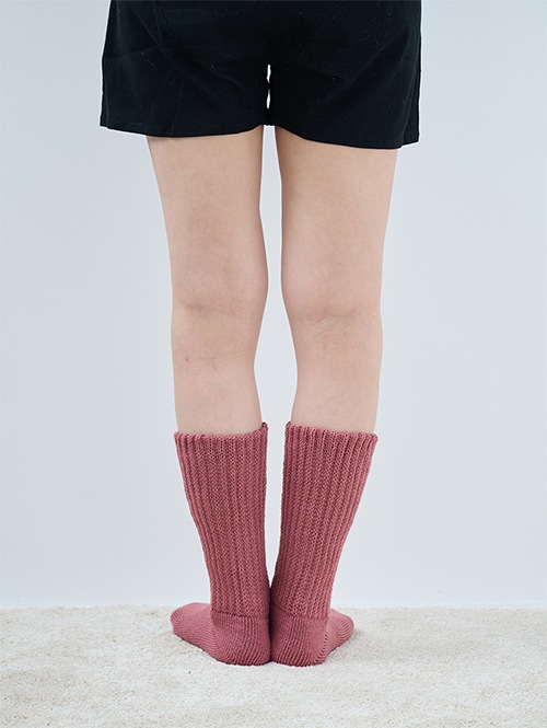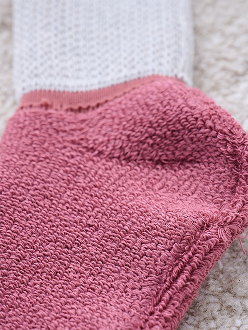 炭糸と天然コットンの二重編みレッグウォーマー ロング(スモーキーピンク)