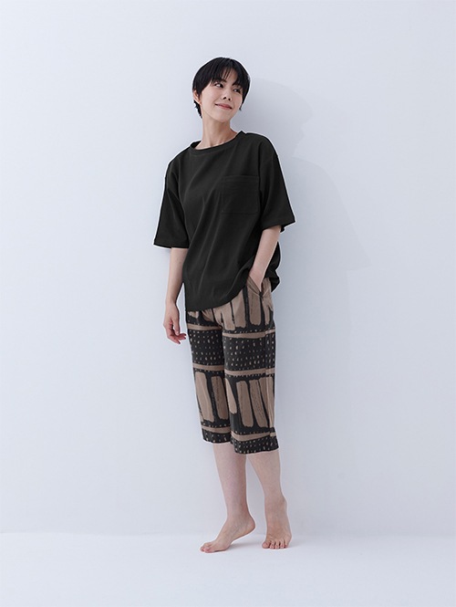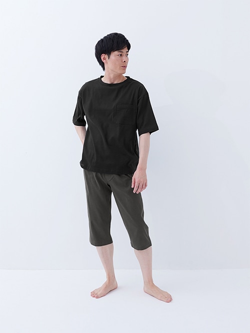 綿ちぢみTシャツは、サラリとしたドライな肌触りで涼しく、洗濯後も乾きやすく、夏の時季にぜひおすすめです。