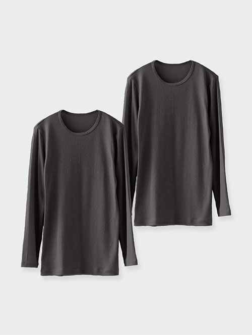 綿100%の肌にやさしい暖かインナー ラウンドネック レディース(ブラック)