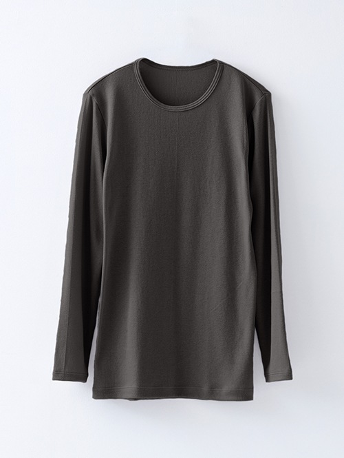 シンプルですっきりとしたラウンドネックのインナーです。胴回りに縫い目がなく、袖下は特殊な縫製をすることで縫い代のゴロゴロ感が無く、肌へのストレスが軽減されます。