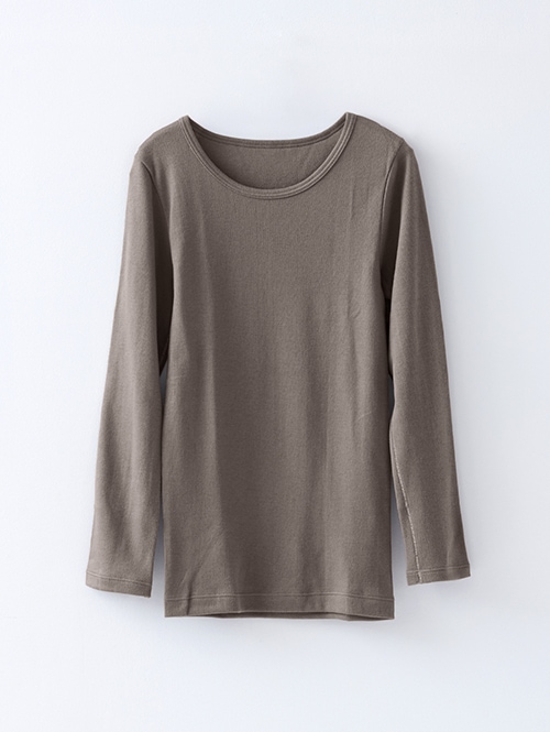 綿100%の肌にやさしい暖かインナー ラウンドネック レディース(グレージュ)