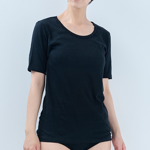 スマイルコットン ふんわりガーゼ天竺 半袖インナー(ブラック)