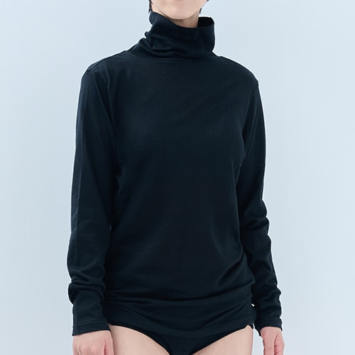 綿100%の肌にやさしい暖かインナー タートルネック レディース(ブラック)