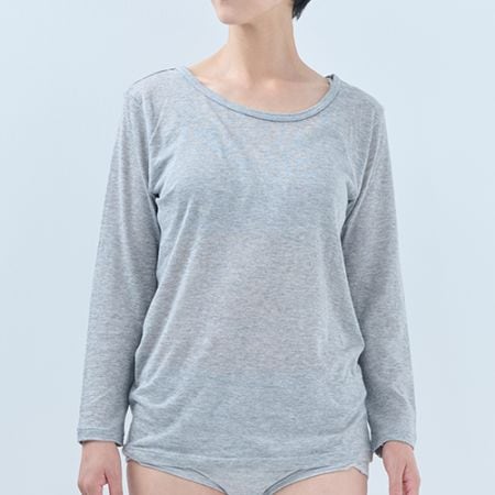 スマイルコットン ふんわりガーゼ天竺 9分袖インナー(杢グレー)