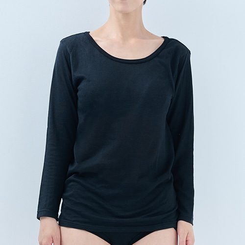 綿100%の肌にやさしい暖かインナー ラウンドネック レディース(ブラック)