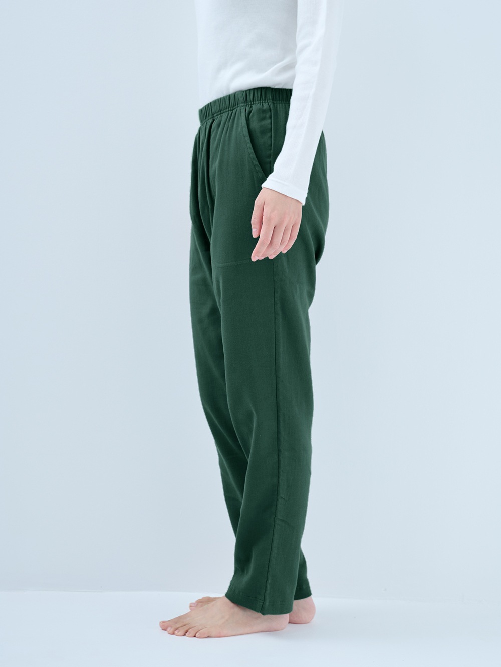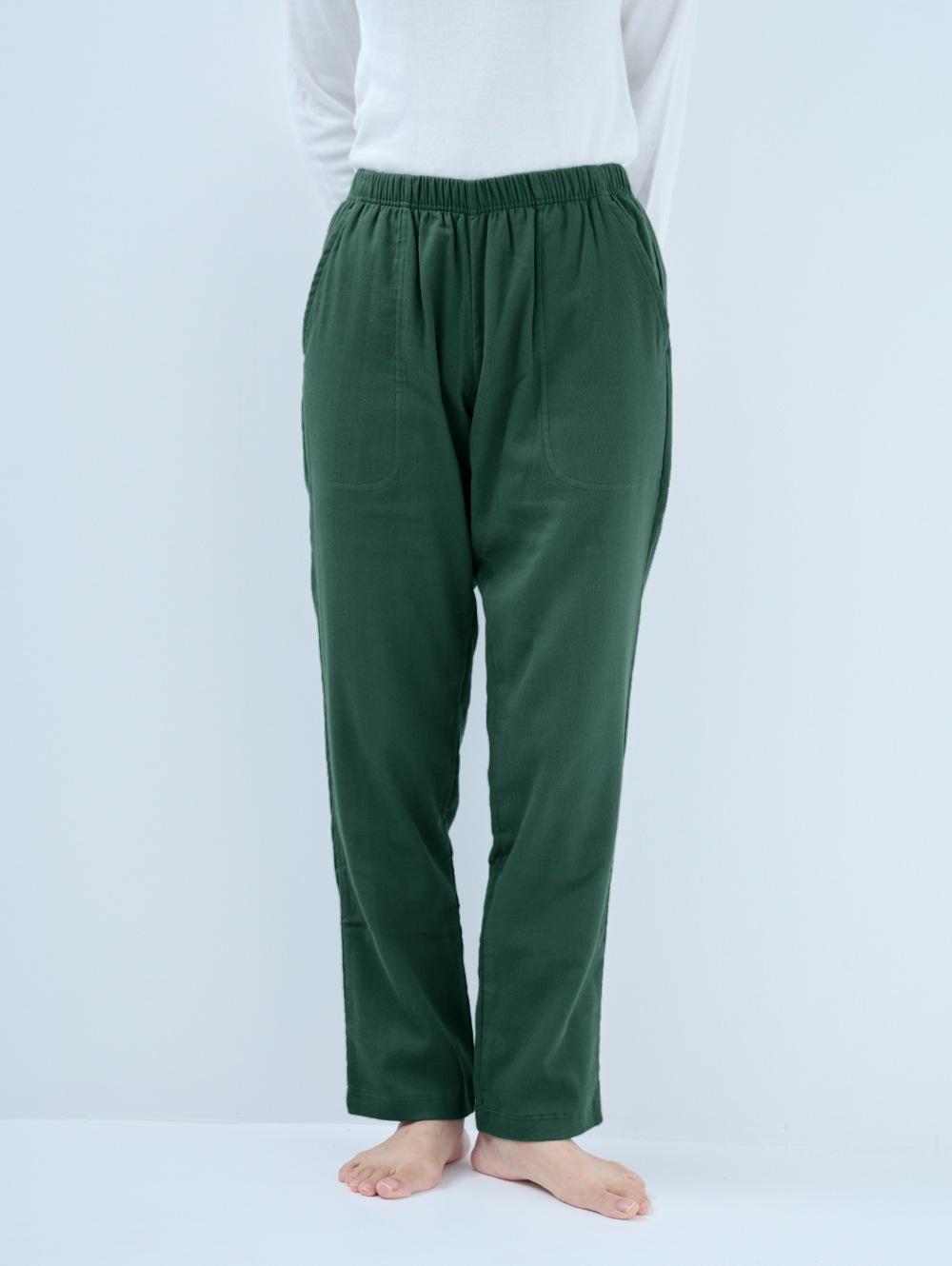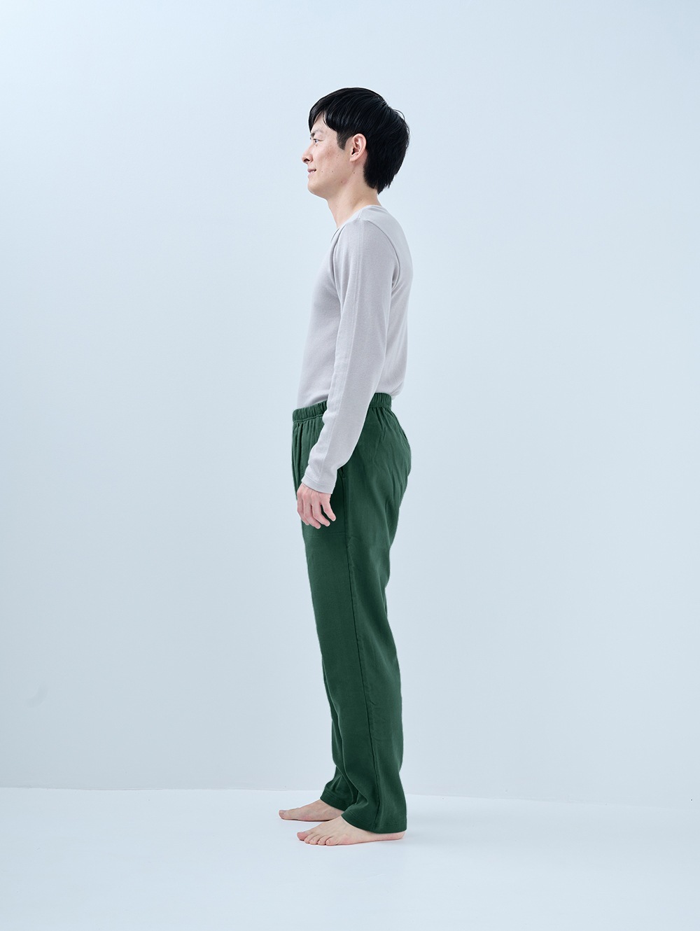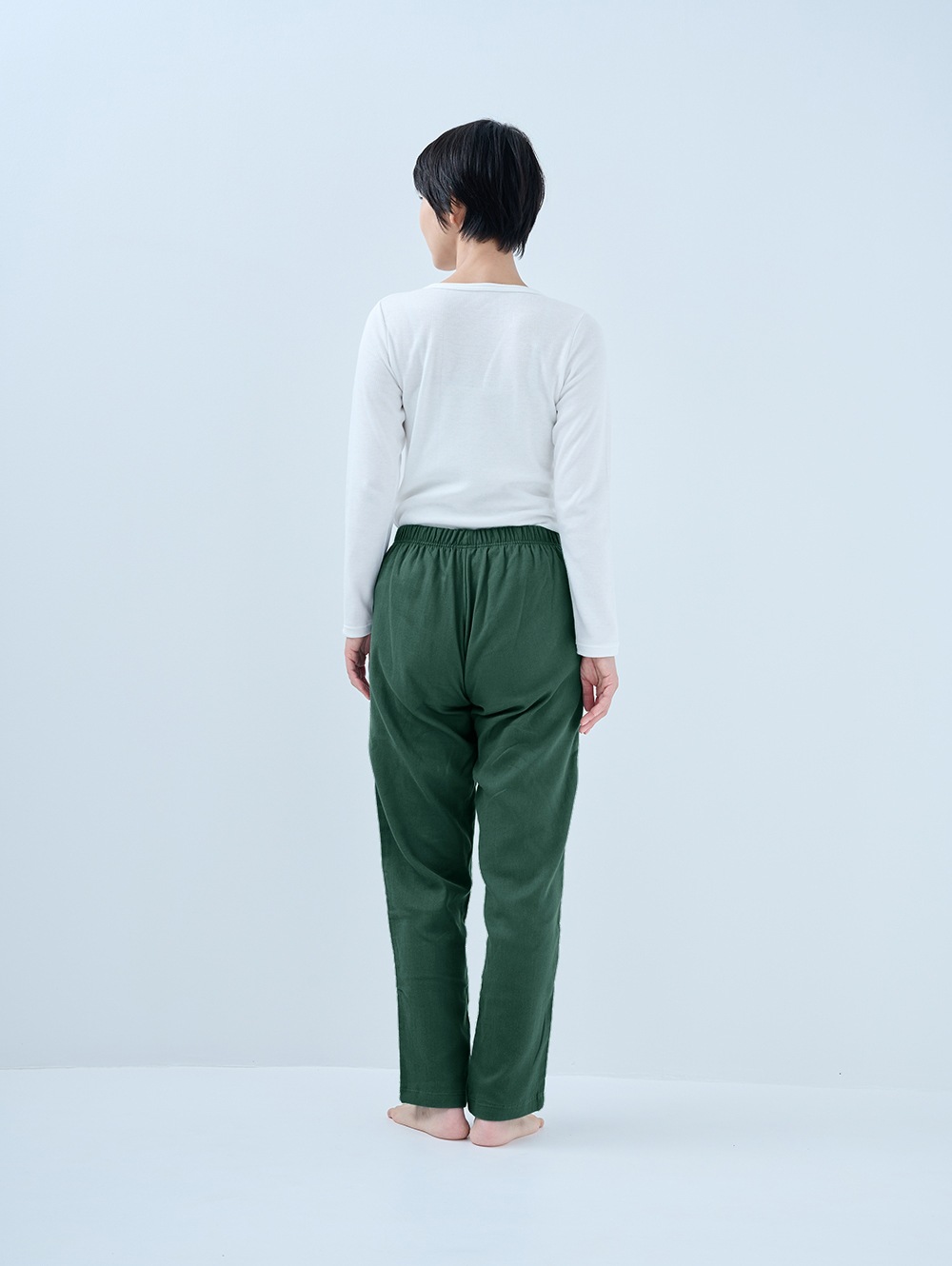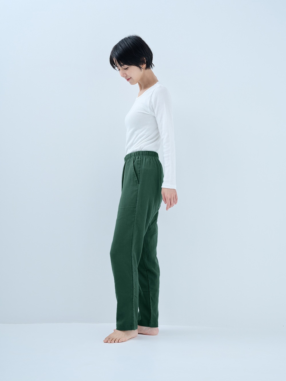 家ナカだけでなく、ぶらっと外にも穿いていける楽ちんパンツ。柔らかく、優しい穿き心地の新しいリラックスパンツです。生地づくりから縫製まで全て日本国内で行っています。