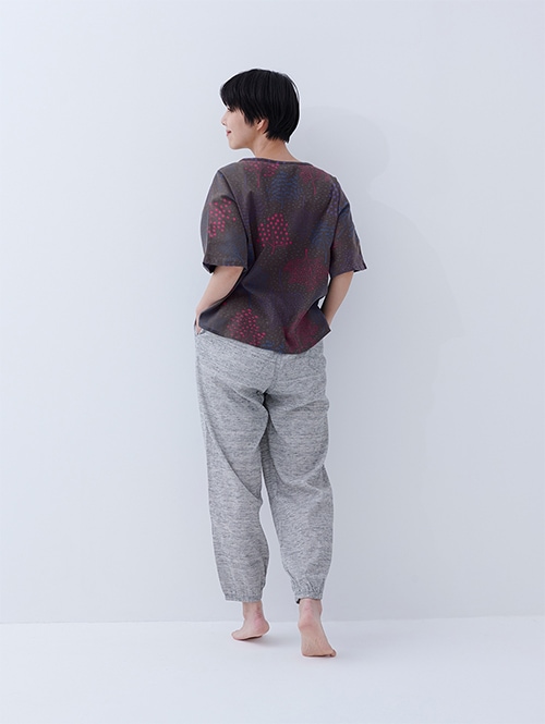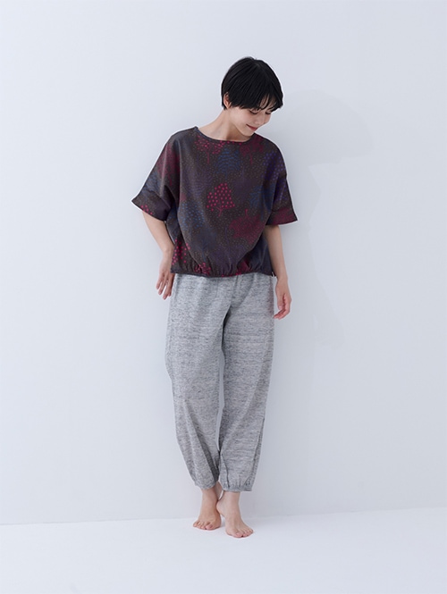 バルーンブラウスは、袖まわりがふわっとしたシルエットで気になる二の腕をカバーしてくれます。キュッと前の裾にギャザーを施すことでバルーンのような可愛らしいデザインになっています。着心地もとても良く快適ですよ。