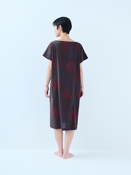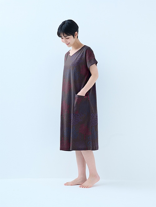 Vネックワンピースは、シーンを選ばず着用できるよう丈を長めにリニューアルしました。ゆったりシルエットで風通しが良く、旅行やお家でのくつろぎタイムだけでなく、銭湯やジムの後の着替えなど、ちょっとしたお出かけにも便利です。