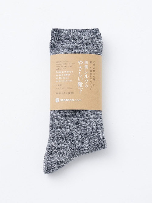 ・肌側シルクのやさしい靴下 メンズ(クロ×オフ)