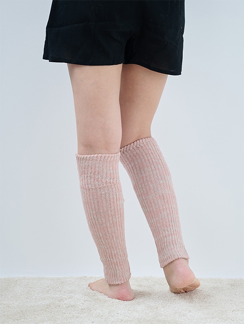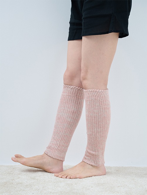 炭糸と天然コットンの二重編みレッグウォーマー ロング(スモーキーピンク)