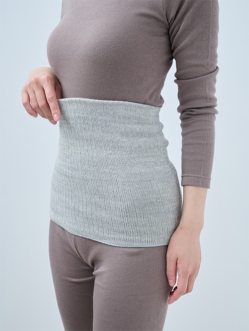 炭糸と天然コットンの二重編みウエストウォーマー(スモーキーピンク)