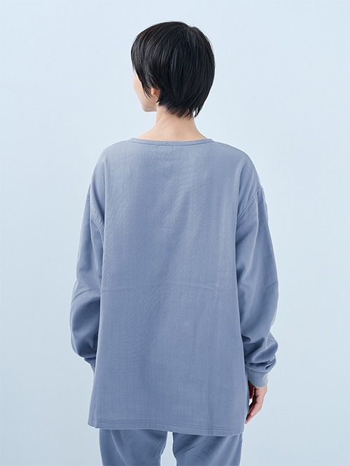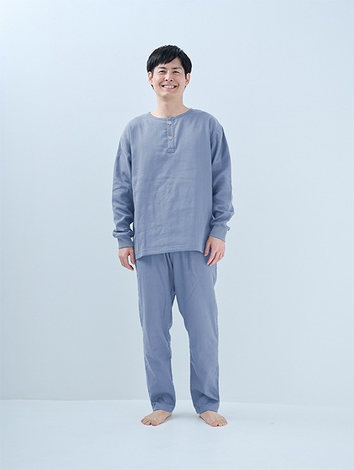 クレープ、ガーゼともにコットン100%使用(ガーゼはオーガニックコットン100%)。長時間の着用でじんわり温かさを実感していただける、程よい中厚タイプで、秋・冬・春と3シーズンご活用いただけます。化学繊維とは違い、コットン特有のふっくらとした見た目、柔らかな肌触り、そしてゆっくりと優しく体を温めてくれるところがまるでおふとんのような生地です。