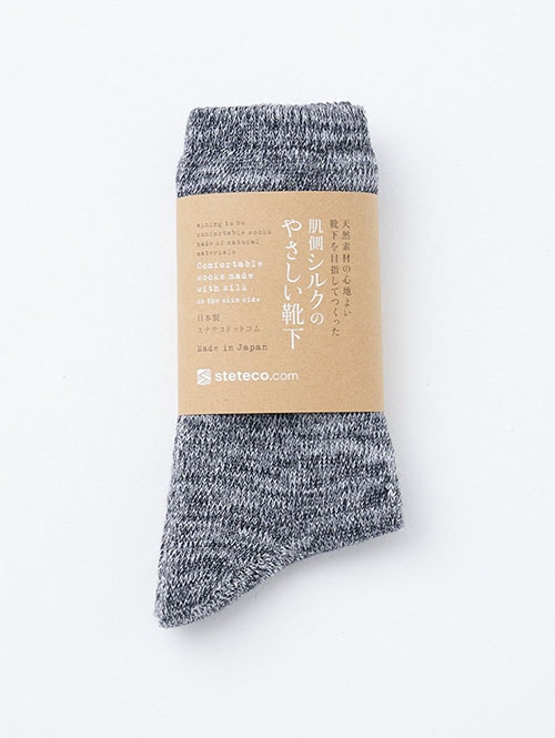 ・肌側シルクのやさしい靴下 レディース(クロ×オフ)
