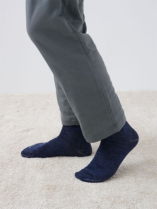 ・肌側メリノウールのあったか靴下 メンズ(ブルー×クロ)