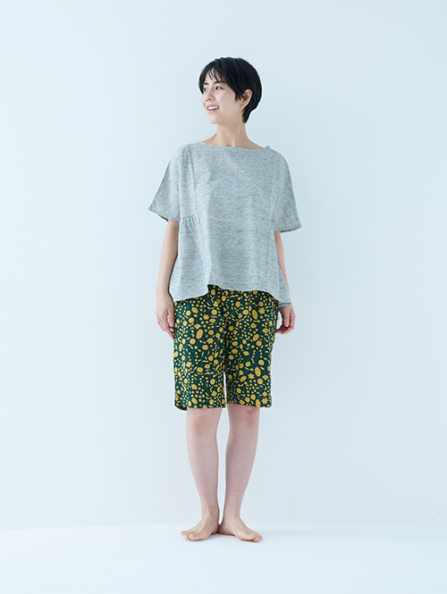 ショート ステテコをベースに、大分国東市で活動する型染め作家である「よつめ染布舎」のグラフィックデザインを融合させたとのコラボレーションアイテムです。