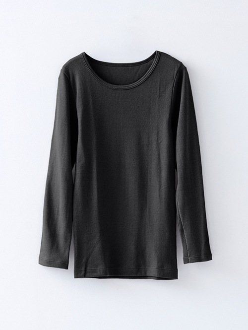 シンプルですっきりとしたラウンドネックのインナーです。胴回りに縫い目がなく、袖下には特殊な縫製をすることで縫い代のゴロゴロ感が無く、肌へのストレスが軽減されます。