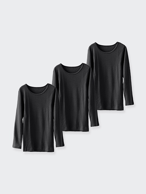 こちらの商品はお得な3枚組です。1枚購入希望の方は、綿100%の肌にやさしい暖かインナー ラウンドネック レディース(ブラック)をクリック。