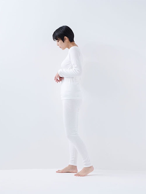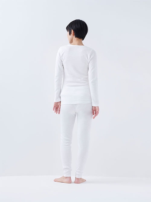 綿100%の肌にやさしい暖かインナー ラウンドネック レディース(オフホワイト)